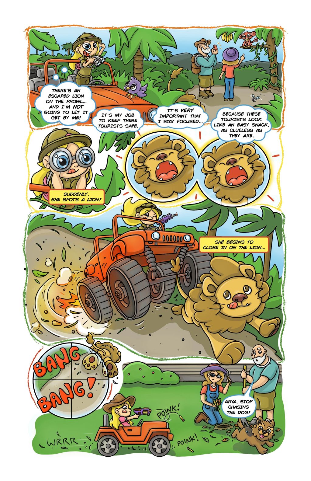 Explore the world of Arya's imagination with thrilling and fun stories throughout the book.